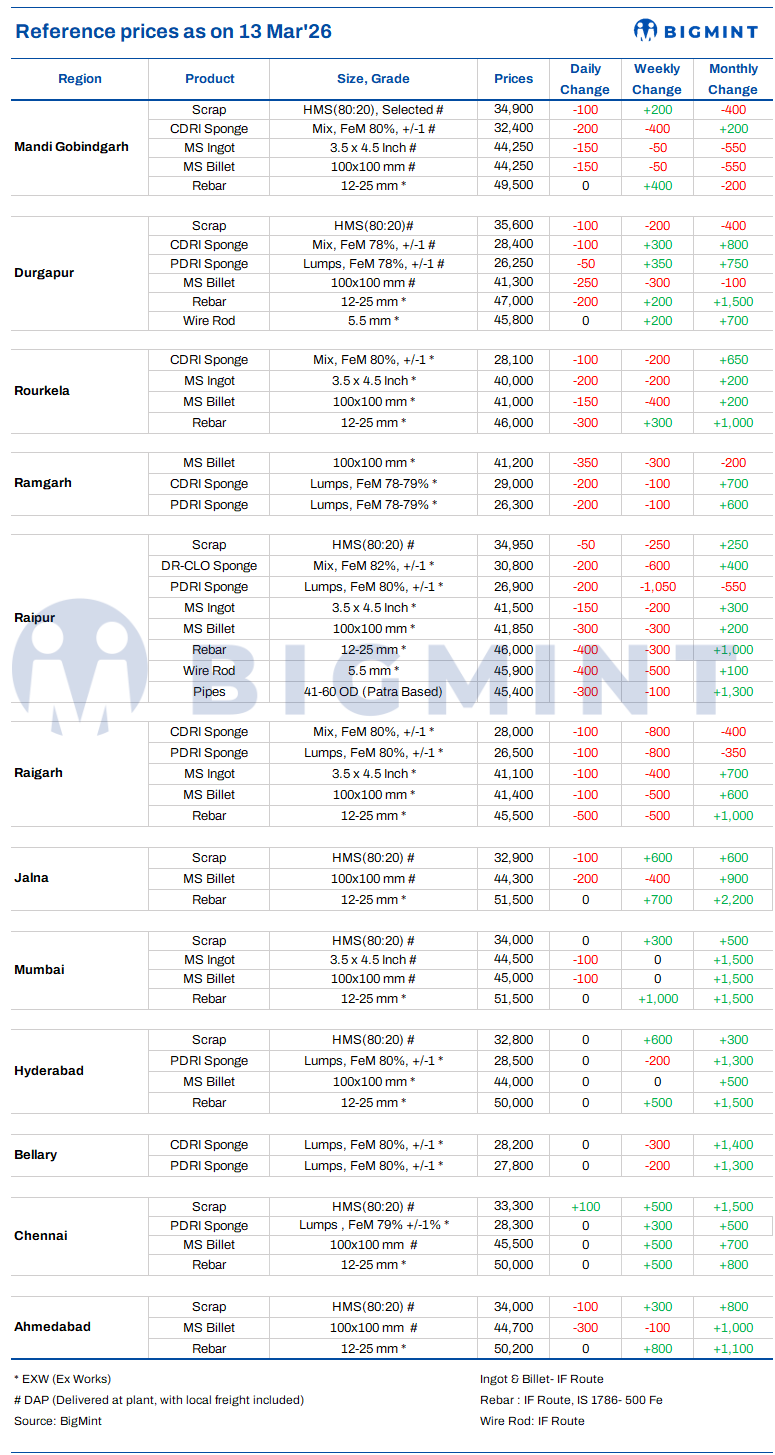 Indian DRI, billet, rebar update - 13 Mar