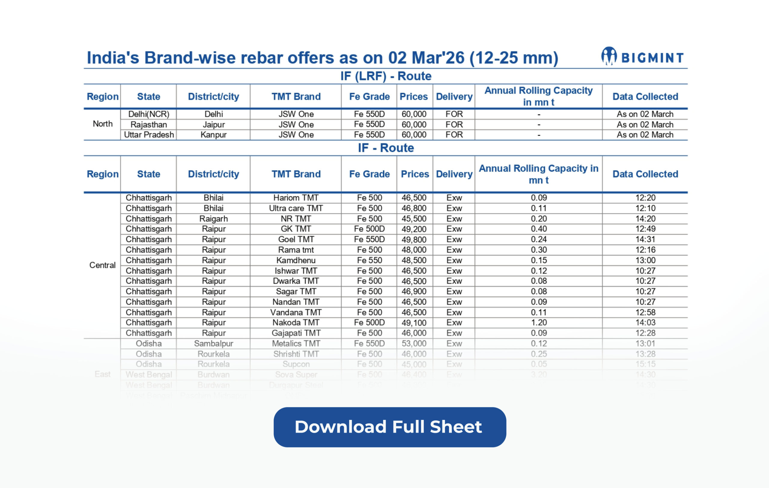 As our valued subscriber, we are happy to share with you a comprehensive brand-wise list of rebar offers spanning some 65 producers as of 02 Mar 2026.