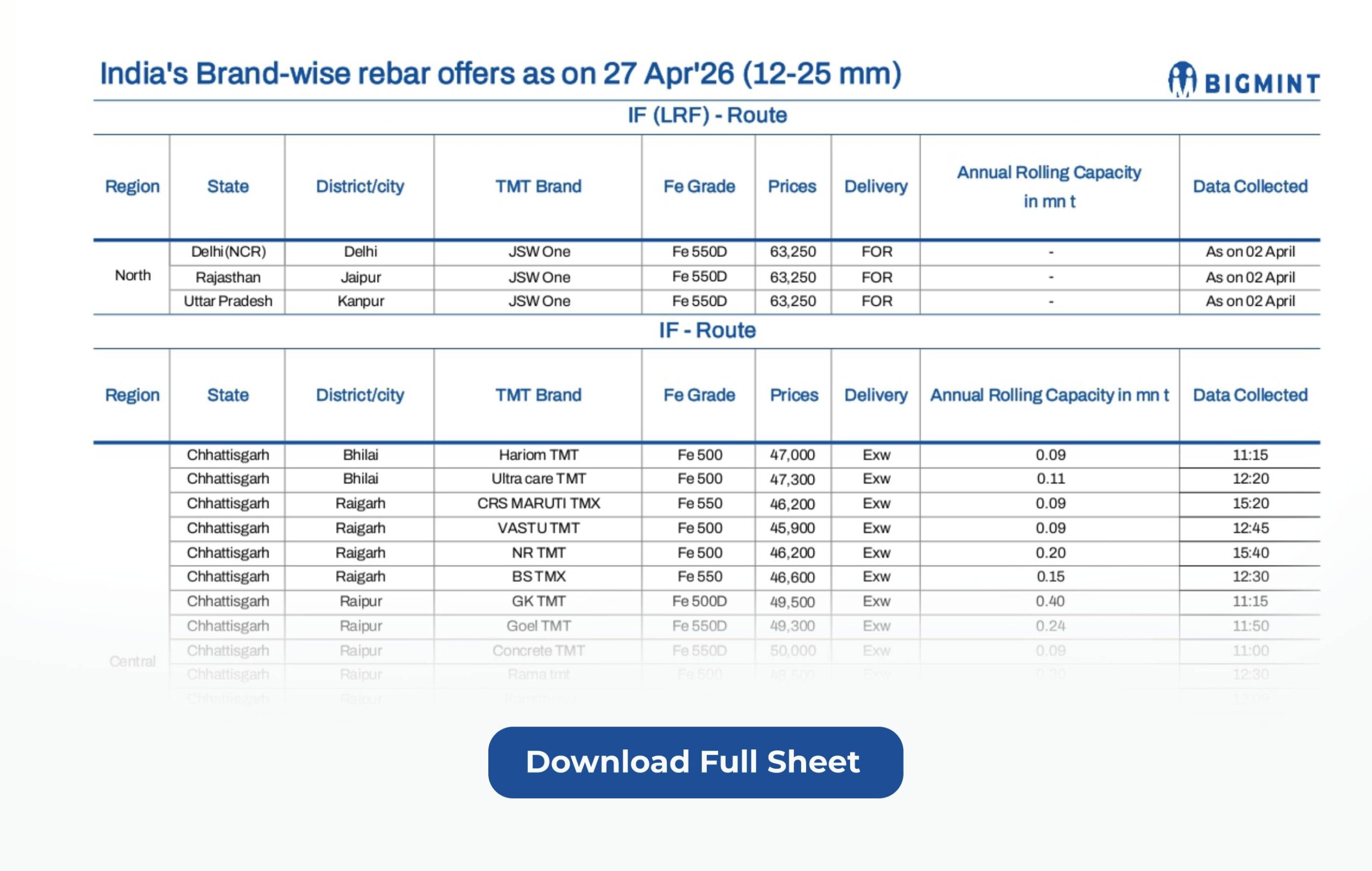 As our valued subscriber, we are happy to share with you a comprehensive brand-wise list of rebar offers spanning some 62 producers as of 27 Apr 2026.