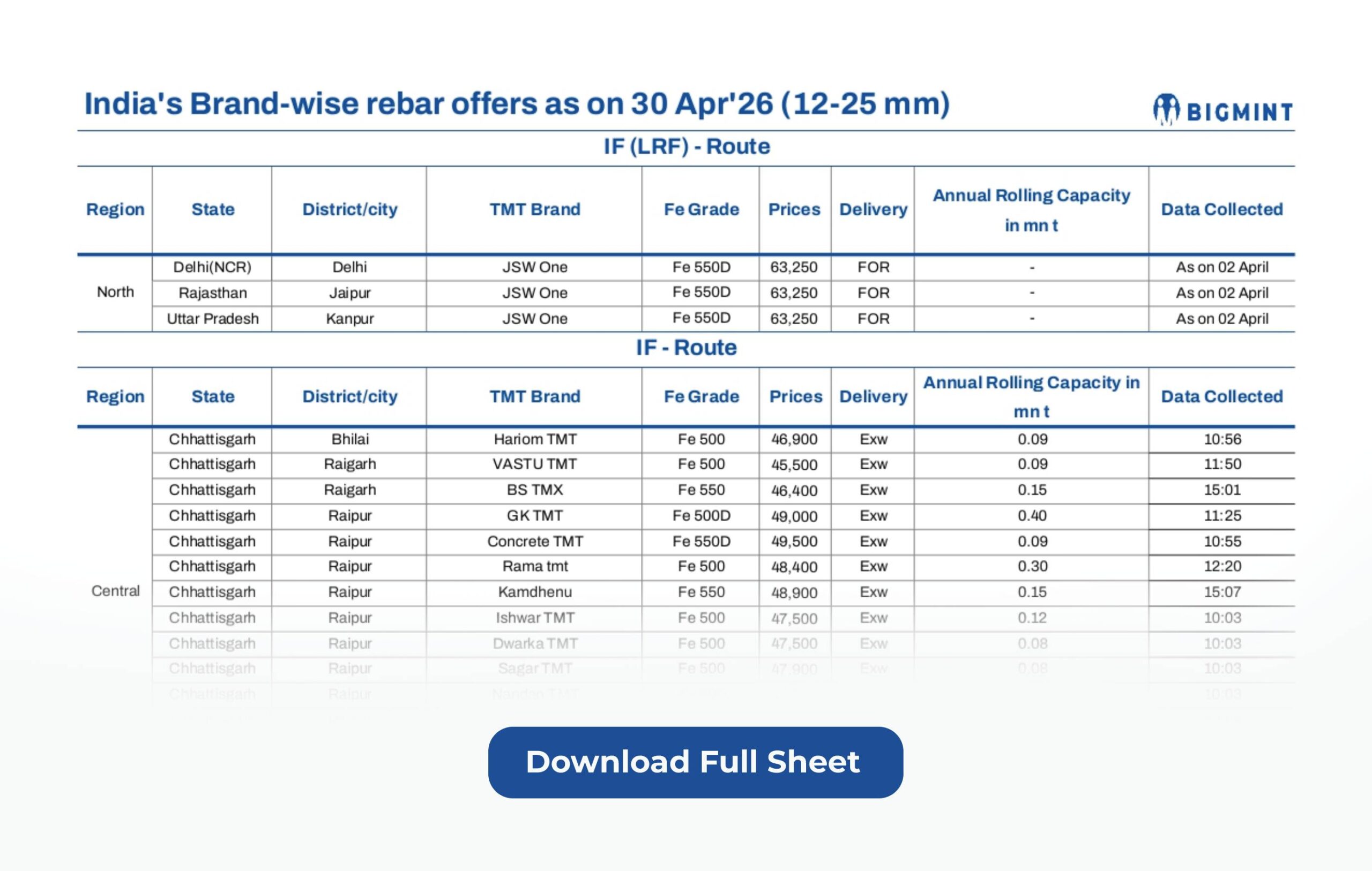 As our valued subscriber, we are happy to share with you a comprehensive brand-wise list of rebar offers spanning some 63 producers as of 30 Apr 2026.