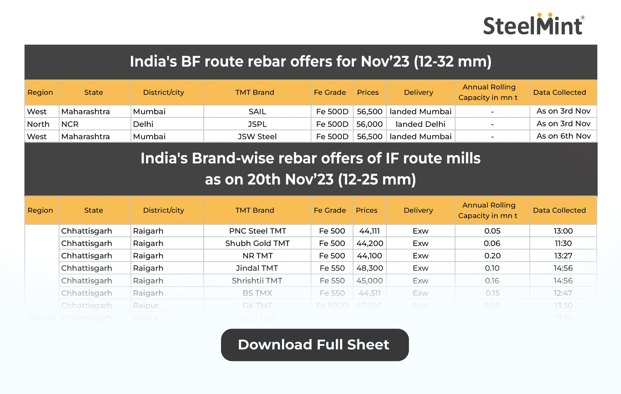 As our valued subscriber, we are happy to share with you a comprehensive brand-wise list of rebar offers spanning some 72 producers as on 20 November, 2023.