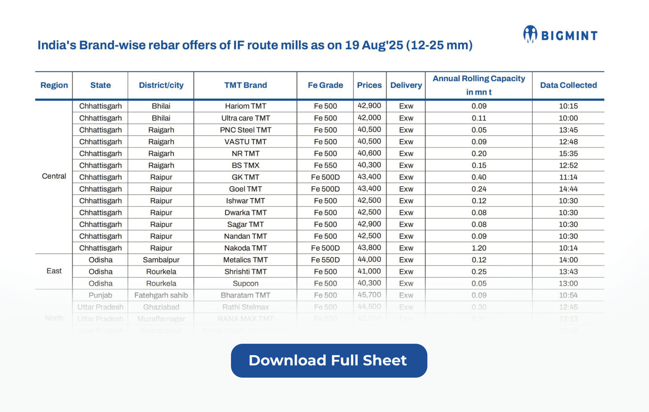 As our valued subscriber, we are happy to share with you a comprehensive brand-wise list of rebar offers spanning some 55 producers as of 19 Aug 2025.