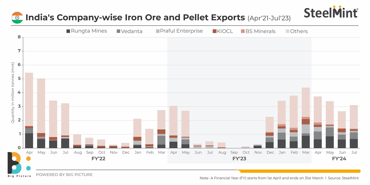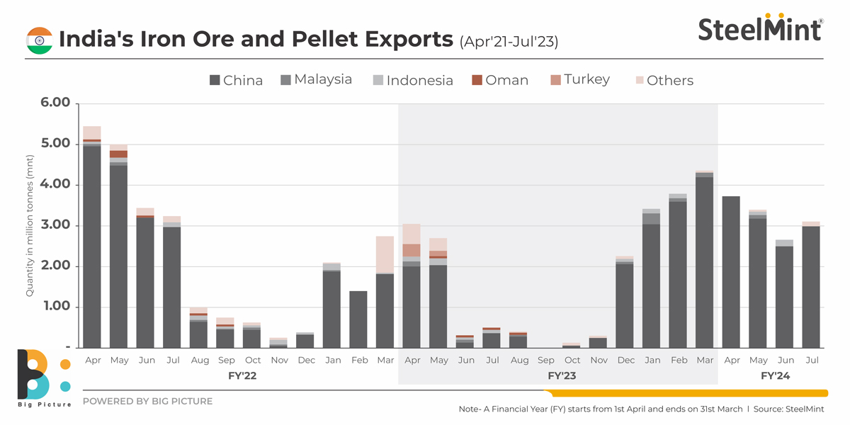 Morning Brief: India's iron ore and pellet exports rose 17% to 3.12 million tonnes (mnt) in July 2023 from 2.66 (mnt) in June 2023.