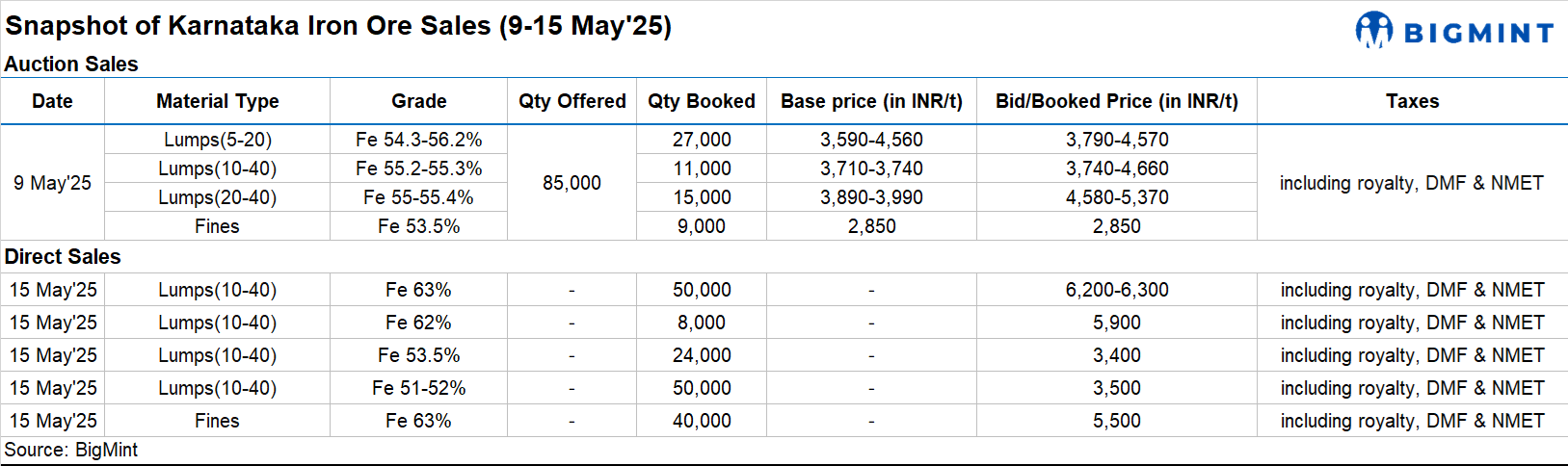 Karnataka iron ore sales scenario (9-15 May 2025)