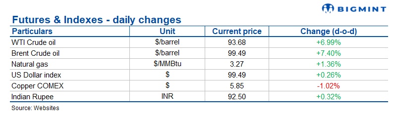 Domestic non-ferrous scrap prices in India remained largely stable, supported by steady demand and cautious trading activity. Aluminium tense scrap (loose), ex-Delhi, increased by INR 1,500 or 0.6% to INR 233,000/t from INR 231,500/t, while ex-Chennai prices remained unchanged at INR 238,500/t.