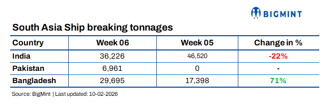 Domestic fundamentals also turned favourable. The taka appreciated slightly against the US dollar, while local steel plate prices rebounded by nearly $9/t to about $494/t after two stagnant weeks. These gains helped ease margin pressure for recyclers. However, caution persists ahead of the mid-February national elections, with political uncertainty continuing to temper aggressive buying.