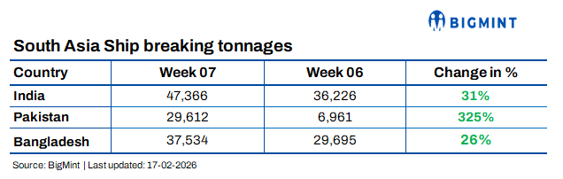 Chattogram witnessed improved optimism following the decisive election victory of the Bangladesh Nationalist Party (BNP), which strengthened expectations of progress on delayed infrastructure projects and potential recovery in domestic steel consumption. Regulatory developments also supported sentiment, as the Bangladesh Ship Breakers and Recyclers Association adopted the International Ready for Recycling Certificate (IRRC) framework in line with Hong Kong Convention standards, enhancing compliance credibility.