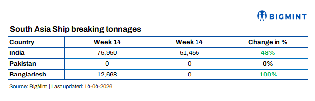 The South Asian ship recycling markets showed mixed trends in the week ended 14 April. India remained cautious amid currency weakness and operational constraints, while Pakistan held steady with stable fundamentals.