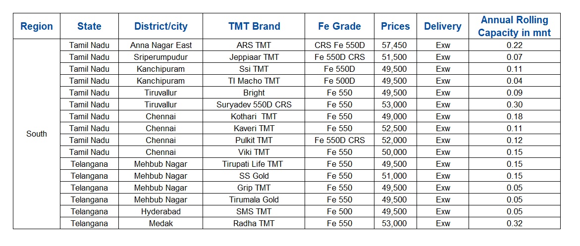 Steel prices in south India jump by around INR 2,000/t w-o-w on higher input costs
