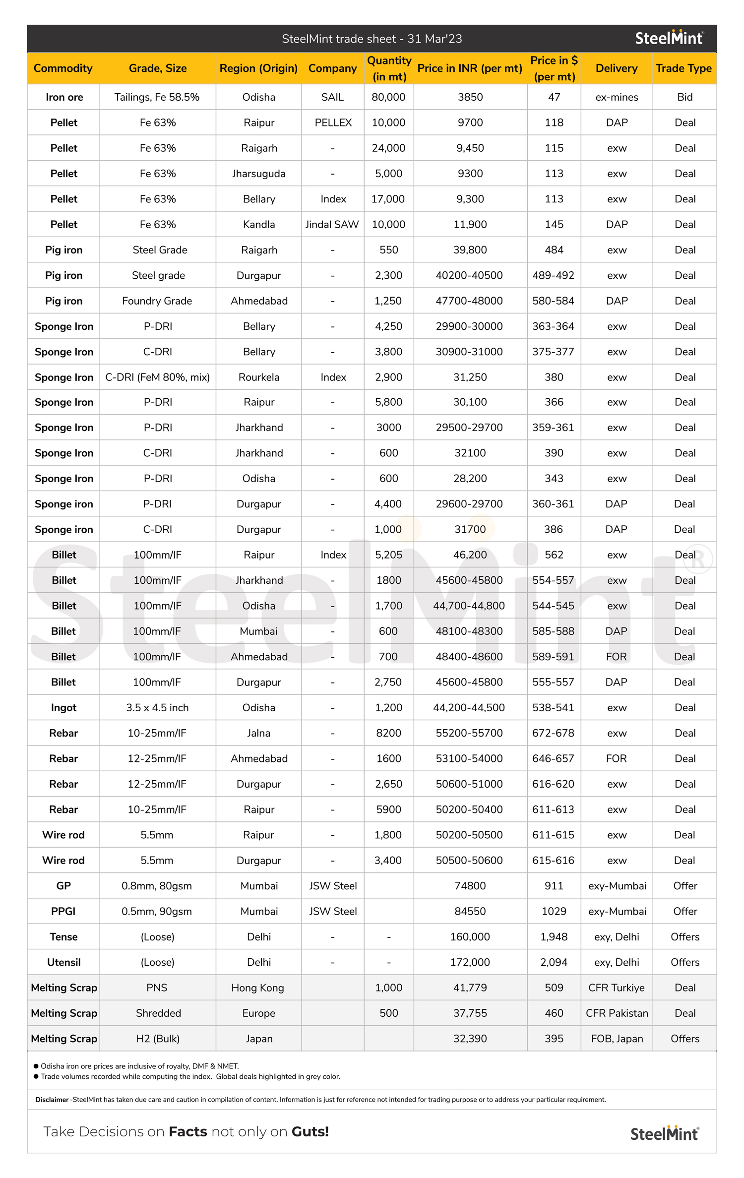 SteelMint Daily Trade Sheet - 31 Mar'23