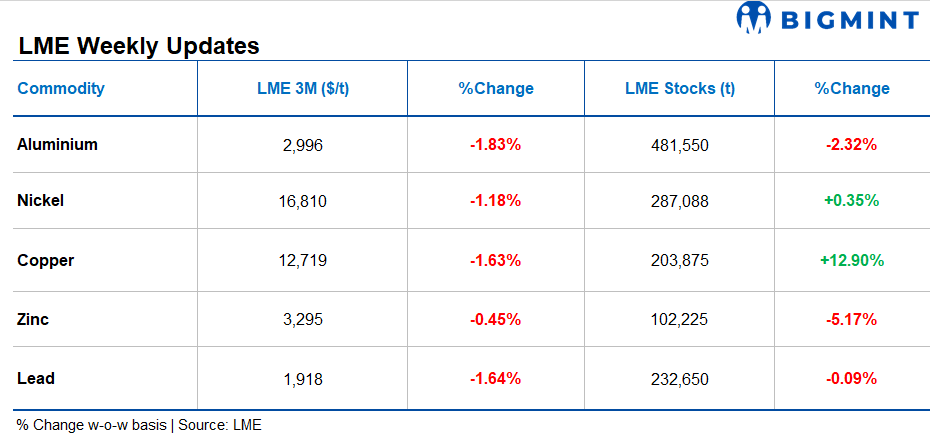 Weekly round-up: Base metal prices decline globally; Indian markets show mixed trend