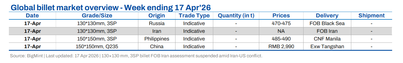Billet markets are expected to remain supported on currency strength, elevated input costs, and constrained supply, particularly in the Black Sea region. However, weak downstream demand and cautious buyer participation are likely to cap any meaningful upside. At the same time, ongoing disruptions in Iran and evolving trade flows across Asia and the Middle East will continue to reshape regional flow.