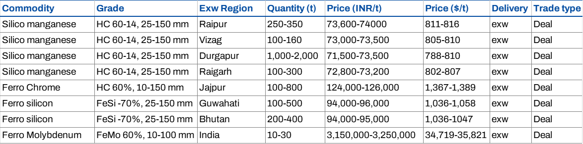 Weekly round-up: Indian ferro alloys prices reflect mixed sentiments w-o-w on global cues