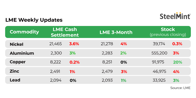 Stocks of all key non-ferrous metals like aluminium and zinc at LME-registered warehouses dropped by 3% and 4% w-o-w. However, copper was up by 20% to 91,975 t.