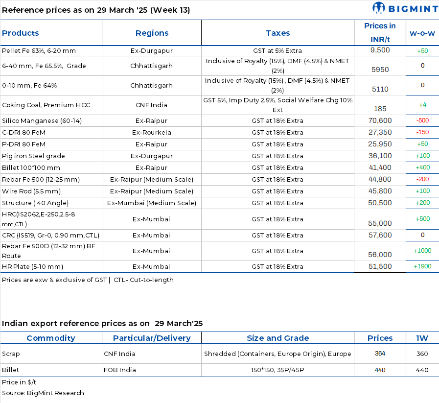 - On a weekly basis, in rebar steel, prices witnessed variations in the range of INR 100-600/t across regions, as per BigMint's assessment.