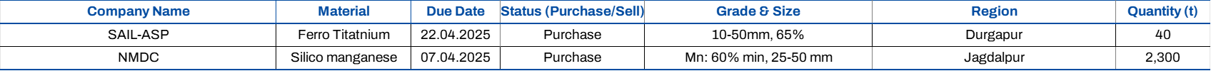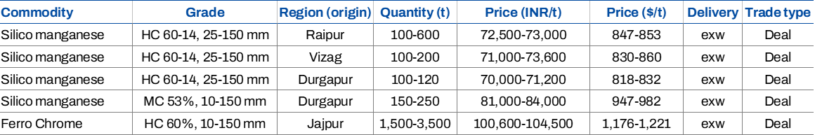 Indian silico manganese prices went down w-o-w by INR 650/t ($8/t) to INR 70,600-72,300/t ($825-845/t) in the key regions of Durgapur, Raipur and Vizag. The decline was driven by need-based buying and competitive pricing from other regions.